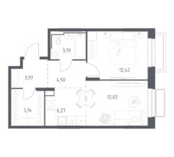 Продаётся 1-комнатная квартира в строящемся доме (Корпус 41), срок сдачи: I-кв. 2027, общей площадью 43.5 кв.м., на 2 этаже. Новый жилой комплекс ''Отрада на реке'' от Застройщика Отрада Девелопмент