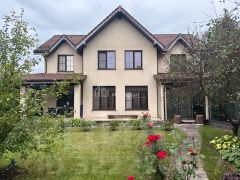 ID 8240Деревянный дом в ОдинцовоДвухэтажный бревенчатый дом с 4-мя спальнями, общей площадью 182 м², представлен ''под ключ'' и расположен на видовом участке 13.2 соток. Продумана удобная планировка. Первый этаж: кухня, гостиная с действующим камином, спальня, совмещенный санузел, выход на террасу.Второй этаж: 3 спальни, санузел, выход на большой балкон.Настоящая усадьба построена из натуральных материалов (из оцилиндрованного бревна диаметром 37 см.) и идеально подходит для постоянного проживания на природе большой семьи. В деревянном доме царит особая атмосфера уюта и всегда комфортный микроклимат в любое время года благодаря беспрепятственной циркуляции воздуха. Для первого этажа использовалась сибирская сосна, а для второго этажа - кедр (Горный Алтай). Дом буквально ''дышит'', что позволяет поддерживать умеренную влажность внутри помещений. Свайный фундамент с ростверком на монолитной плите гарантирует прочность и надёжность здания. Вентилируемая кровля с утеплением (200 мм.) покрыта натуральной черепицей (''BRAAS''). Фасад покрывали краской ''Tikkurila''. Из двухкамерных окон с профилем из массива сосны от фирмы ''Красивые окна'' открывается вид на собственный участок. Полы первого этажа и лестница выполнены из массива дуба. Аутентичный интерьер дополнен мебелью и предметами декора. Большая площадь остекления и высокие потолки (на первом этаже высота потолков 3 м., а в мастер - спальне потолки 3,2 м.) делают дом просторным и очень светлым. В санузлах установлена сантехника известных производителей. Вся электрика скрыта в металлической гофрированной трубе. Газовый котел (мощностью 42 кв.), теплые полы и водяные трубы фирмы ''Rehau'' поддерживают оптимальную температуру воздуха в холодное время года. Центральные коммуникации обеспечивают городской комфорт круглый год: газ, водоснабжение, электричество и канализация. На веранде (75 м²) с половым покрытием натуральной лиственницей приятно отдыхать и устраивать душевные посиделки. На участке также построен уютный дом с баней (70 м²). На облагороженном участке правильной формы сделаны дорожки, растут деревья и кустарники. Можно воплотить любые ландшафтные решения. Наши надежные партнеры будут рады помочь воплотить любые идеи. Одинцово находится в 10 км. от МКАД по Минскому шоссе. Здесь прекрасная экология и обилие живописных пейзажей. Город известен санаторно-курортной сетью спортивно-оздоровительных комплексов. В Одинцово есть памятники архитектуры и культуры. Жителям доступна богатая городская инфраструктура г. Одинцово, где есть абсолютно всё необходимое: детские сады, школы, супермаркеты, торговые центры, аптеки, кафе, рестораны, поликлиники, отделения банков.