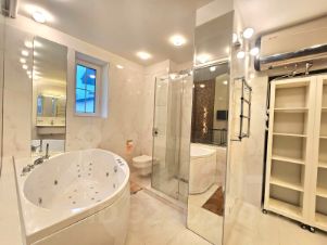 Дом находится на охраняемой территории посёлка, где есть множество площадок для проведения досуга: детская площадка, высотный верёвочный парк, спортивная площадка, зоопарк. Для любителей конного спорта есть возможность брать частные уроки верховой езды. Квартира расположена в малоэтажном монолитном доме (всего 6 квартир во всем доме), имеет отдельный вход и небольшую прилегающую территорию, на которой можно устраивать пикники и проводить летние вечера. Квартира с дизайнерской отделкой, оборудована теплым полом, кондиционерами, встроенной техникой: посудомойка, духовка, микроволновая печь. В квартире два санузла, один из которых оборудован хозяйственной зоной со стиральной машинкой. Просторная кухня-гостиная с большим обеденным столом и зоной отдыха. Три отдельный комнаты: спальня со своим санузлом и гардеробной, кабинет, и комната, которую можно обустроить полностью под себя. Все комнаты имеют панорамные окна и свой выход на террасу.К квартире прилагается парковочное место под навесом (помещается две машины). Недалеко от дома расположены два ресторана, предлагающие русскую, европейскую, кавказскую и азиатскую кухни. В них вы можете заказать проведение мероприятий и праздников. Рядом с поселком расположена лесопарковая зона, где можно покататься на вездеходе или квадроцикле. Зимой на территории центрального манежа заливается каток, площадью 400 кв.м. и открывается прокат коньков.Строго!!! Без домашних животных, для некурящих!!!Предоплата за 1 месяцЗалог 220 000 ₽
