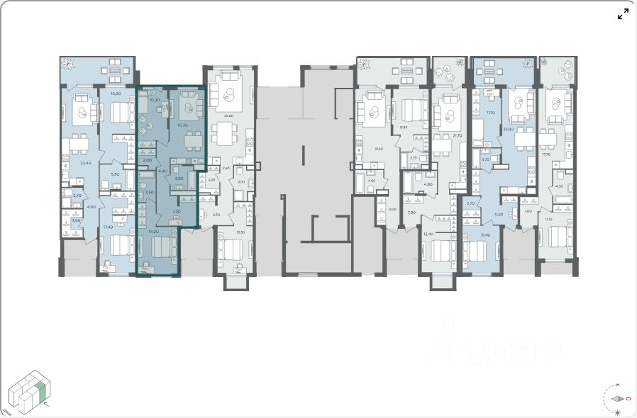 Продаётся апартамент с 2 комнатами общей площадью 57.10 кв. метров на 1 этаже жилого квартала комфорт-класса ''Равновесие''.