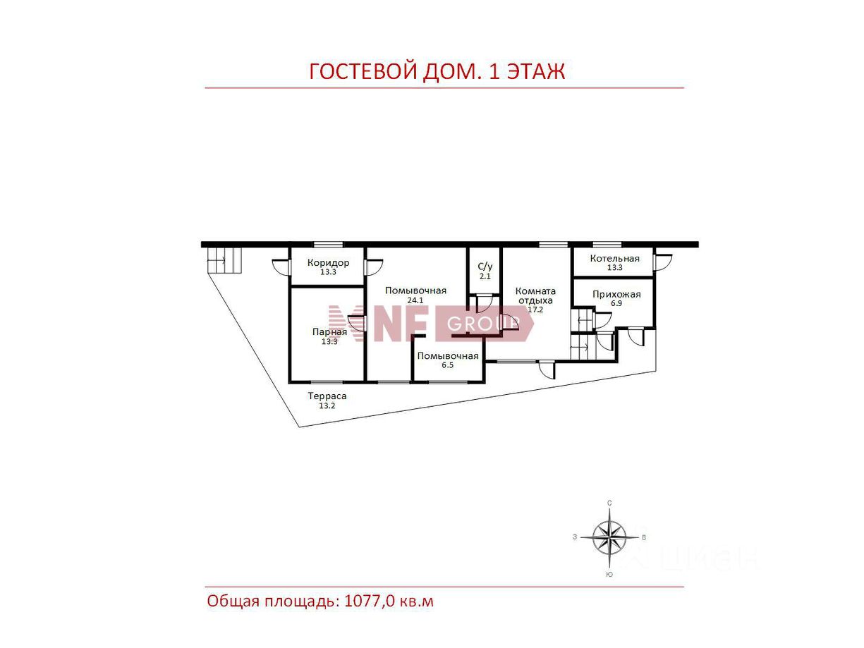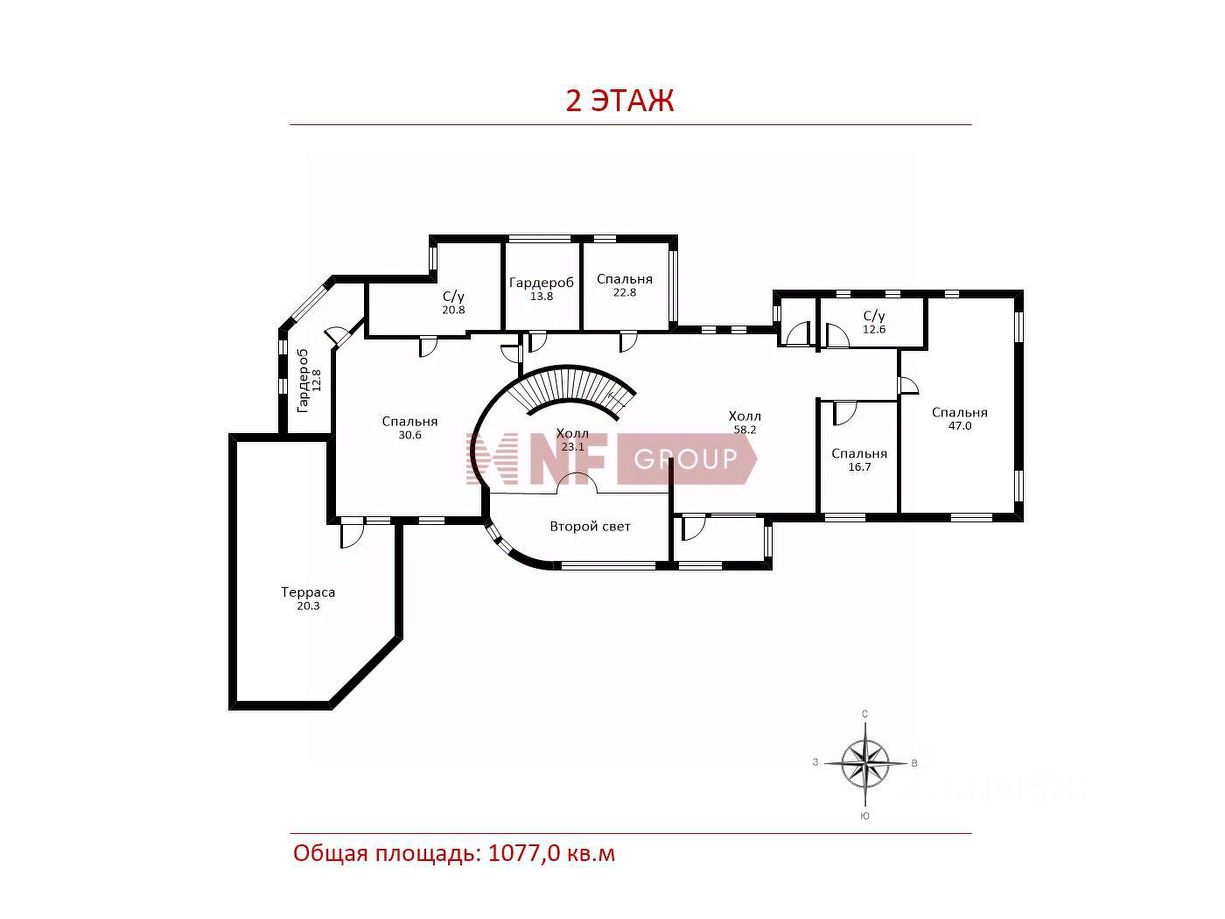 Общая площадь1077 м2