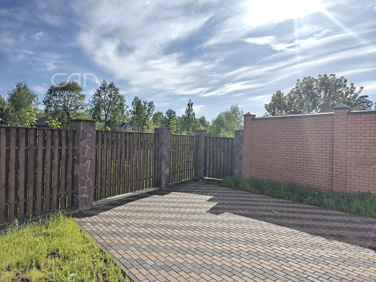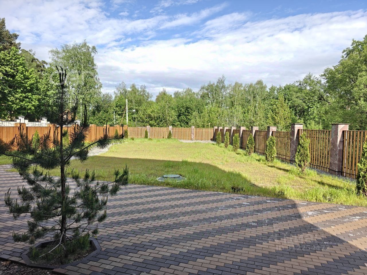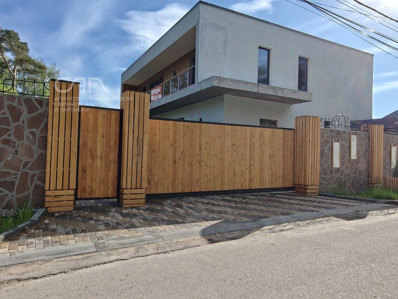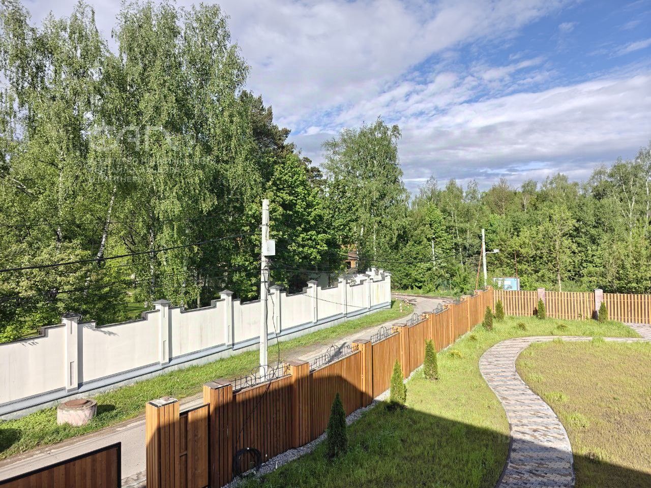 По периметру забор в дереве. Сбоку дома крытый паркинг на две машины. Соседи только с одной стороны. За домом планируется строительство набережной. Улица тихая, машины редкость.