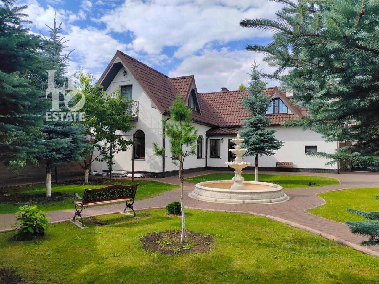 Полностью благоустроенный земельный участок 17,4 соток сочетает красивый ландшафт и удобство отдыха на свежем воздухе. Просторный двор с вымощенными дорожками отлично подходит для семейных вечеров. Декоративный фонтан придает двору особую атмосферу уюта. Также на участке имеется гараж на шесть машин, с дополнительным жилым помещением для персонала на втором этаже, включающим в себя два санузла, кухню, гостиную и спальню.