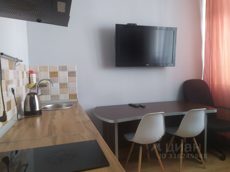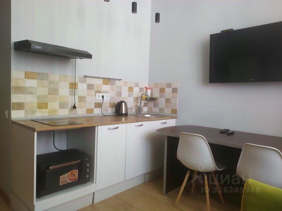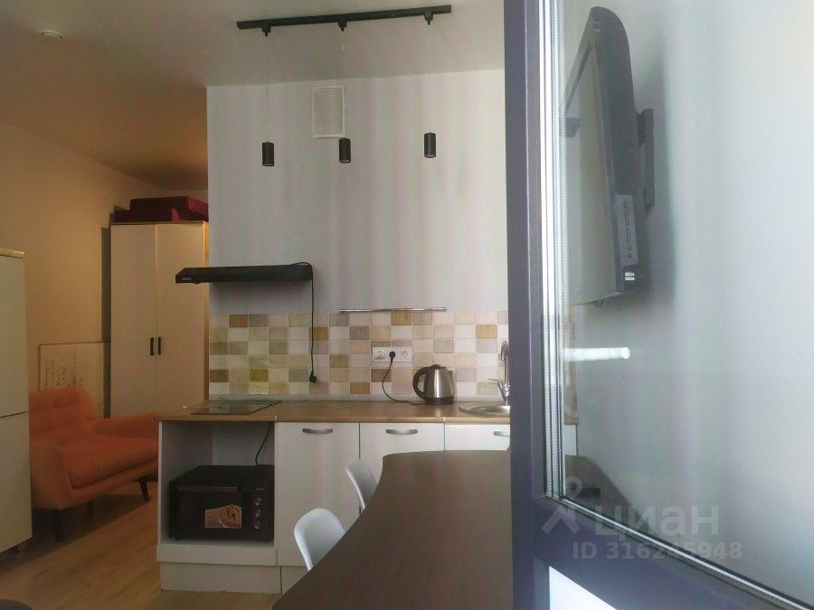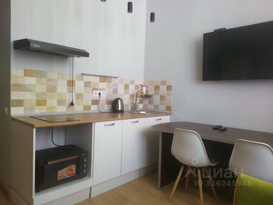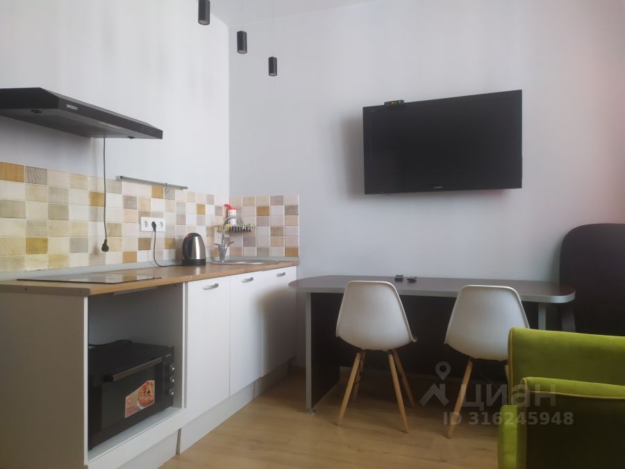 Уютная студия с качественным ремонтом в ЖК Инновация. Жилой квартал Инновация современный квартал класса расположенный в экологически чистом районе по соседству с инновационным центром Сколково. Сдаётся уютная, обустроенная компактная студия в которой есть все для комфортного проживания двухспальный диван/кровать, стол, три стула, кухонный гарнитур, холодильник, микроволновка. Студия квартира очень светлая, теплая, имеется большой просторный балкон утепленный с прекрасным видом из окна. Компактная кухня оборудована всем необходимым для проживания одного или двух человек. В ванной комнате есть душевая кабина и стиральная машина. Вся сантехника, как и ремонт абсолютно ''свежий'' На небольшом пространстве есть спальня, кухня, обеденная зона, ванная и прихожая.