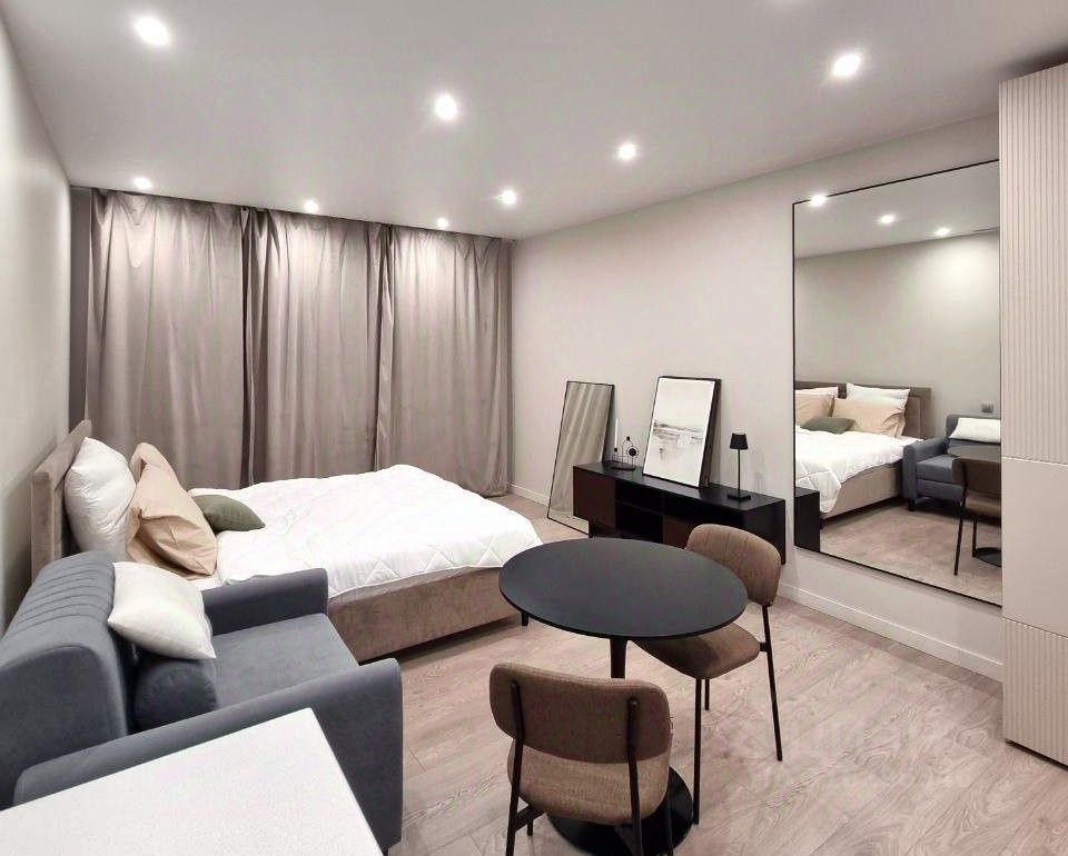 ПРО КВАРТИРУ квартира студийной планировки с дизайнерским ремонтом, укомплектована полностью, полноценная ванная комната, качественная бытовая техника ,стиральная машина, посудомоечная машина, кондиционер, много места для хранения вещей, кресло, кровать, качественный ремонт с дизайнерскими решениями. Если будет необходимо, то есть машино место за отдельную оплату.
