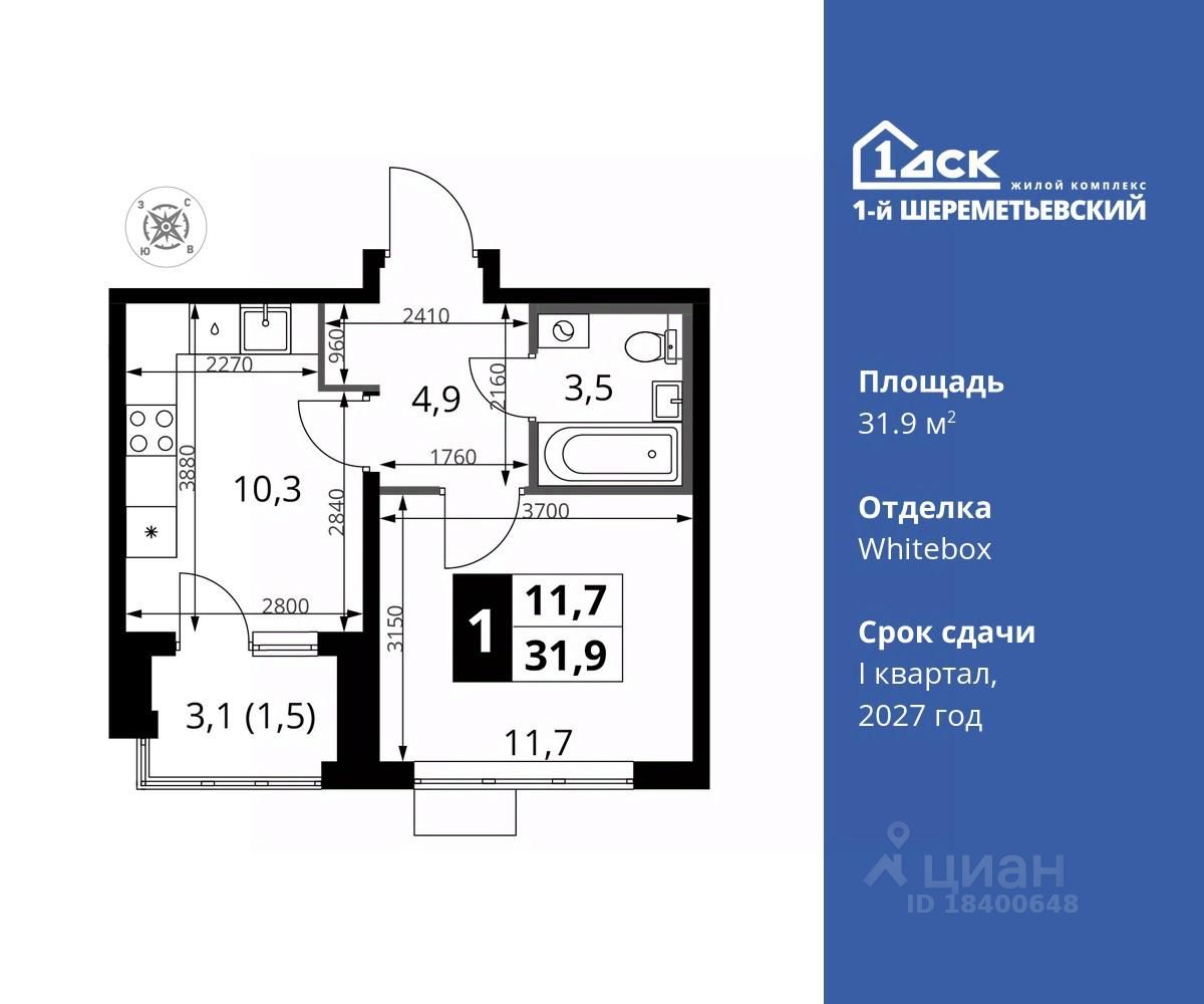 Максимальные скидки при 100% оплате. Прямая продажа от застройщика! Жилой Комплекс класса Комфорт плюс. Продаётся 1-к квартира номер 648 общей площадью 31.9 кв.м на 2-м этаже 16 этажного дома. Отделка Whitebox.
