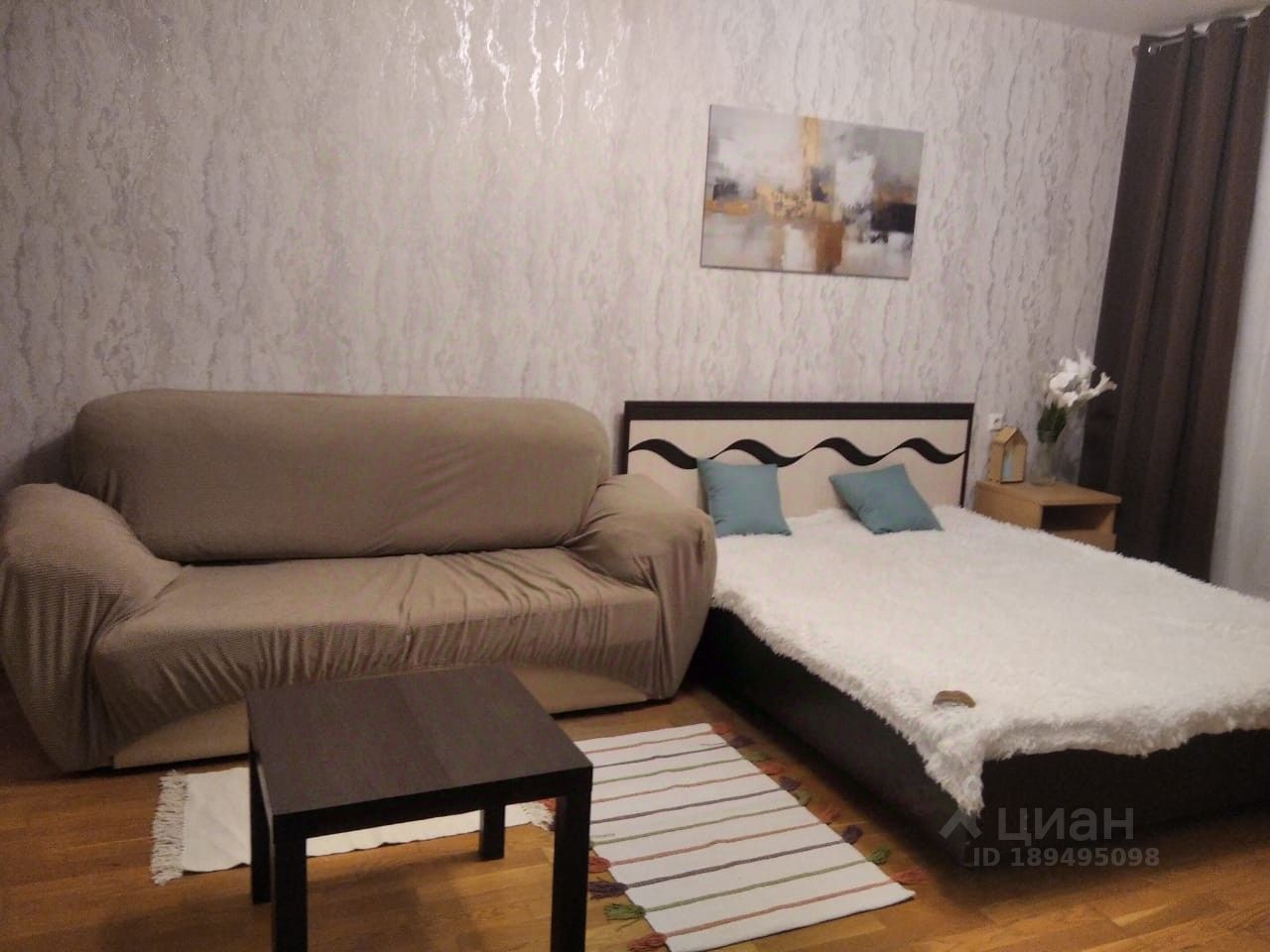 В квартире сделан косметический ремонт. Прихожая, шкаф, стенка, двуспальная кровать, холодильник, раскладной диван, кух.гарнитур, плита, стиральная машина .