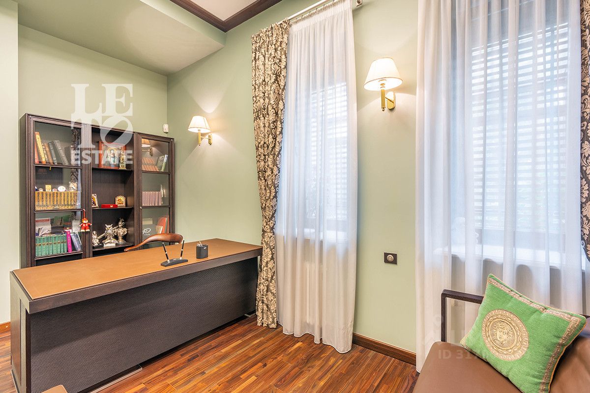Планировка: Первый этаж - прихожая, гардеробная комната, гостиная с выходом в зимний сад , кухня столовая, санузел, кабинет, спа-зона: бассейн с выходом на террасу, санузел, Второй этаж - мастер-спальня с санузлом и гардеробной комнатой, спальня с санузлом, две спальни, санузел, Цоколь - котельная, техническое помещение под бассейном, комната для хранения , оружейная, кинотеатр, гараж.