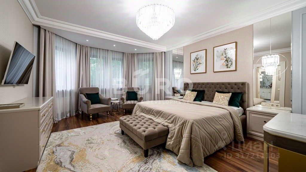 Дом возведен из высококачественных материалов в самом престижном, экологически чистом районе Подмосковья и идеально подходит для постоянного проживания и отдыха на природе вблизи Столицы. Шикарный интерьер с неоклассическими мотивами укомплектован изысканной мебелью и предметами декора. В санузлах установлена сантехника ведущих производителей. Большая площадь остекления и высокие потолки делают дом светлым, просторным и уютным. Центральные коммуникации обеспечивают городской комфорт круглый год (газ, электричество, водоснабжение и канализация). Есть возможность подключить высокоскоростной интернет и телефонную связь.