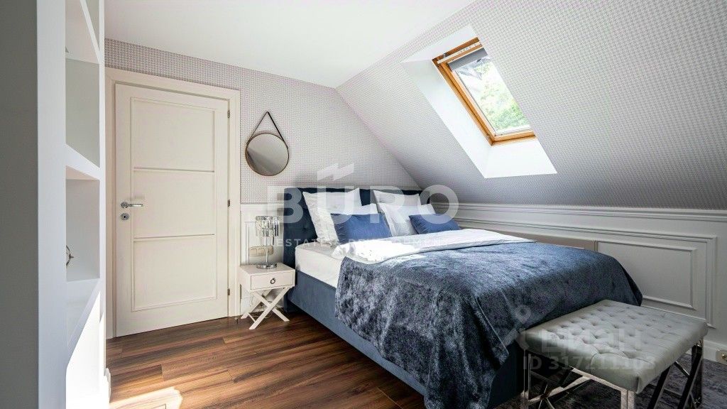 Уютный загородный дом с 5-ю спальнями, общей площадью 450 м², представлен ''под ключ'' и расположен на видовом участке 20 соток.