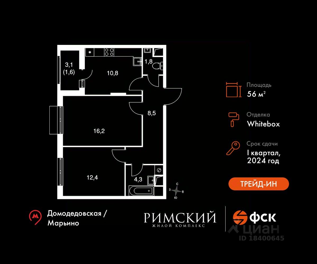 Транспортная доступность: Всего 2 км от МКАД, 15 минут на транспорте до метро ''Домодедовская'' и ''Марьино''