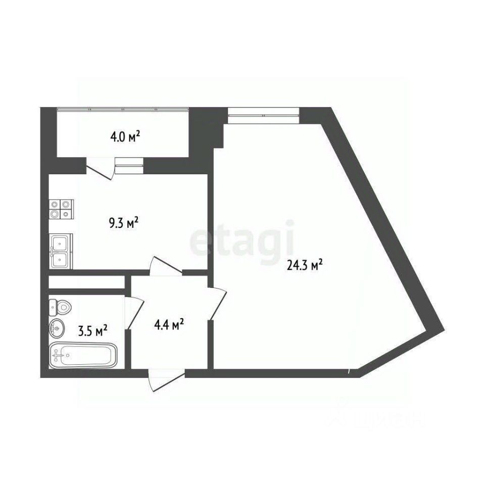 О КВАРТИРЕ: Квартира в черновой отделке с функциональной планировкой: светлая кухня 9,3 кв.м., просторная комната - 24,3 кв.м., санузел совмещен, широкий и вместительный коридор, есть лоджия 4 кв.м.