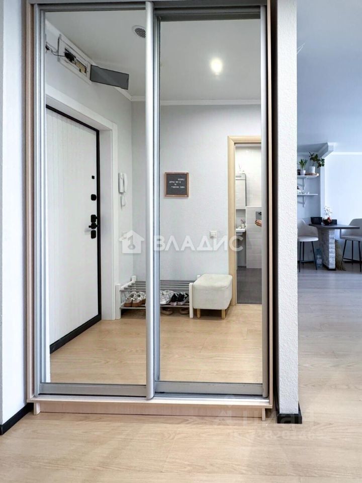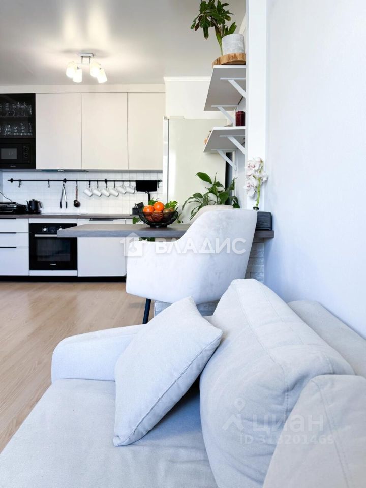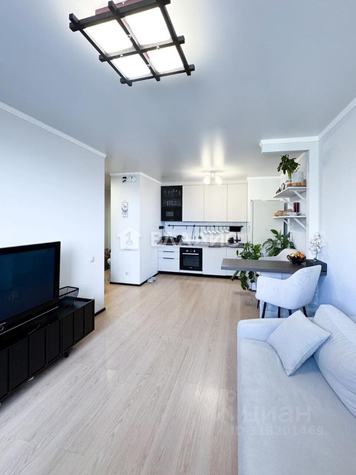 Квартира расположена на 13 этаже 17-этажного монолитного дома, построенного в 2017 году. Общая площадь составляет 45,5 кв. м, из которых 34 кв. м — жилая площадь, а 8,2 кв. м занимает кухня. Высота потолков — 2,7 метра. Окна выходят на улицу, создавая приятный вид. В квартире выполнен дизайнерский ремонт, что позволяет новым владельцам сразу заселиться без дополнительных вложений.