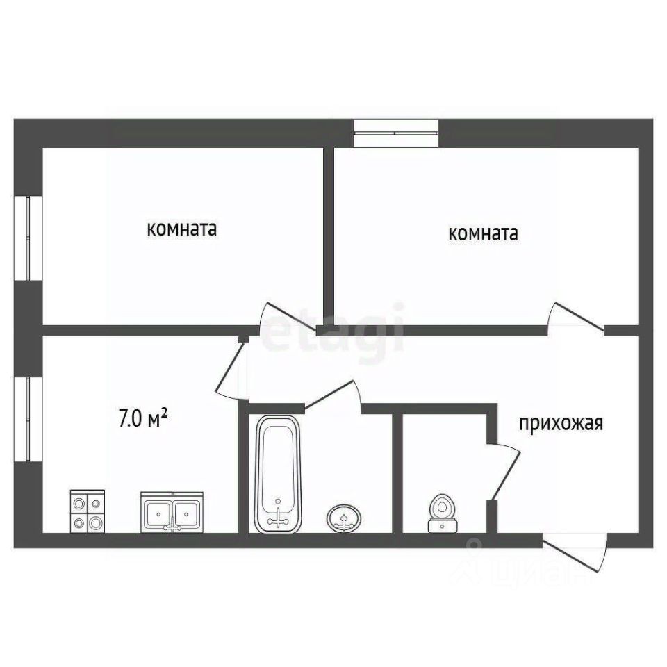 Продается двухкомнатная квартира общей площадью 51,5 м² с изолированными комнатами, жилой площадью 31,6 м² и кухней 7 м². Объект находится в свободной продаже без обременений, с двумя взрослыми собственниками, не имеющими регистрации в квартире. Полная стоимость указана в договоре, что исключает дополнительные расходы.