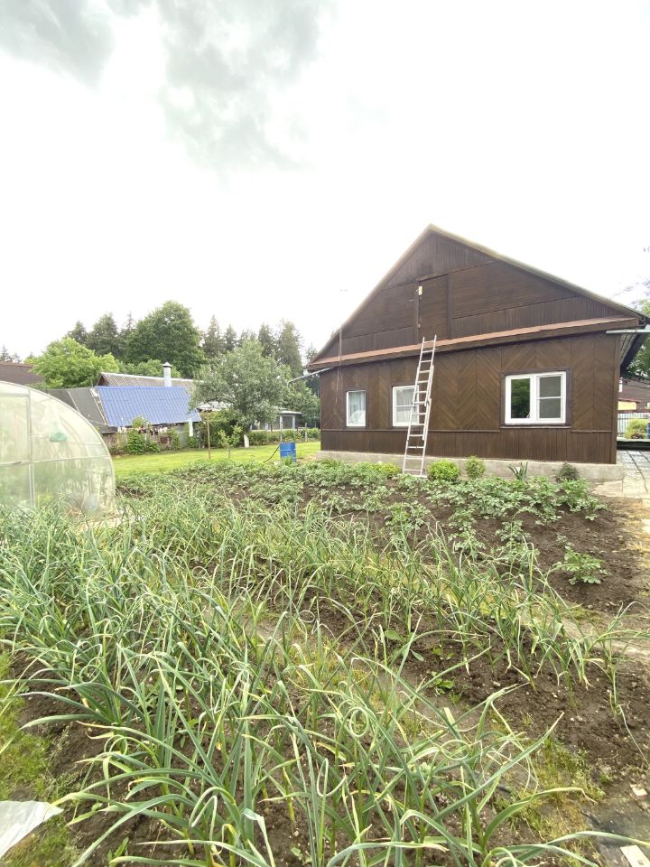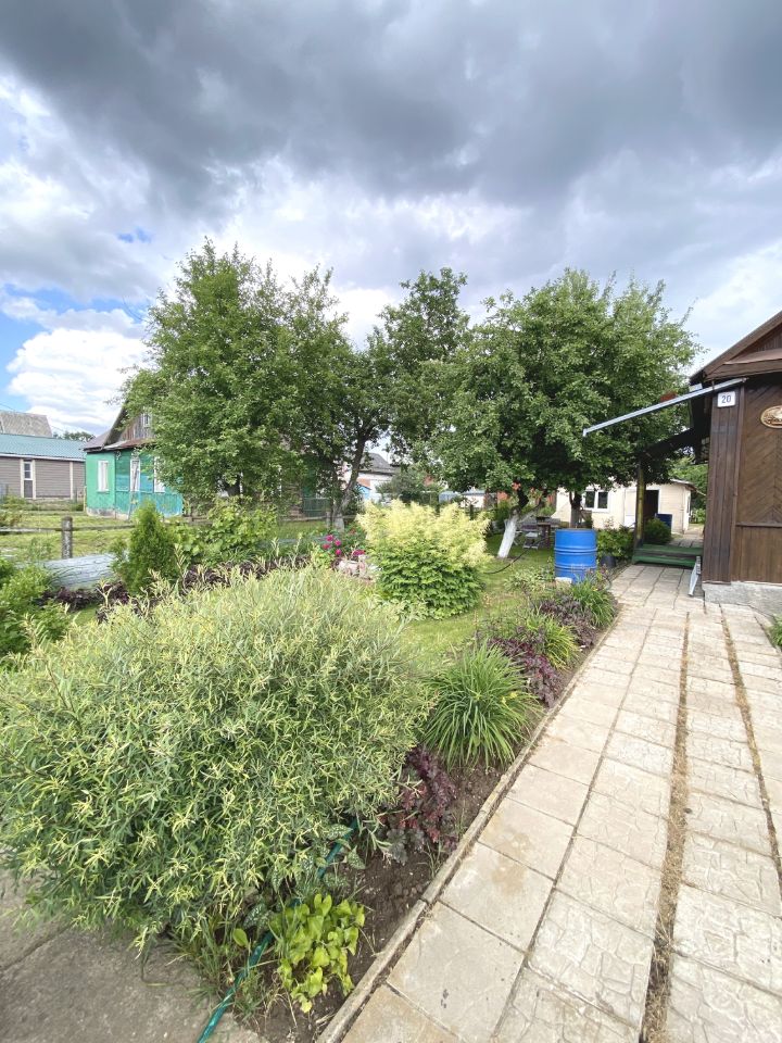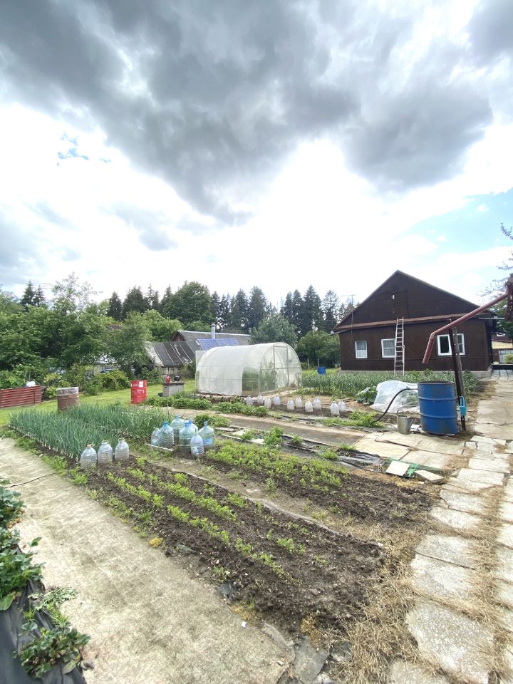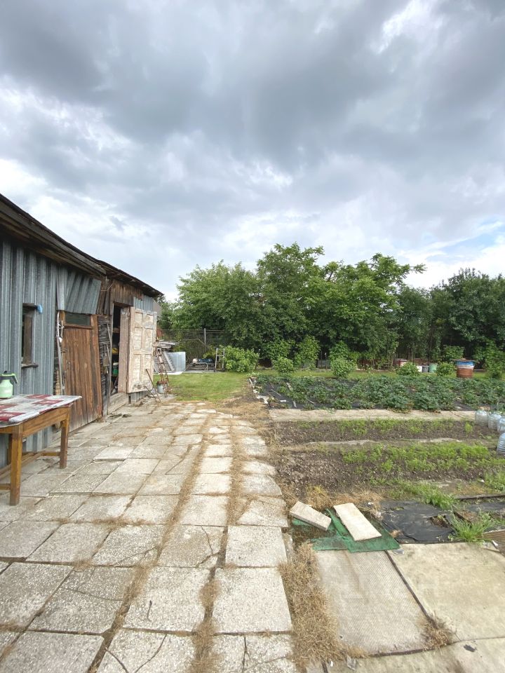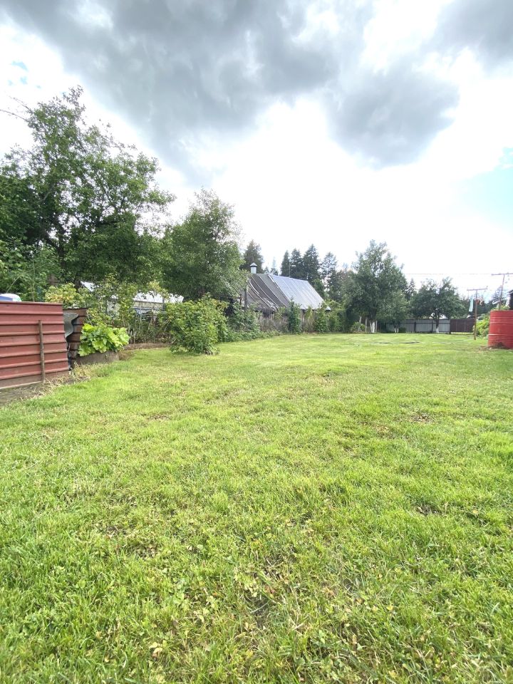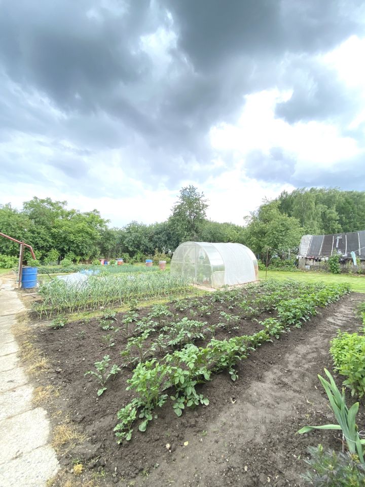 Участок огорожен забором и ухожен: растут плодово-ягодные деревья, а также есть грядки с картофелем, зеленью и ягодами.