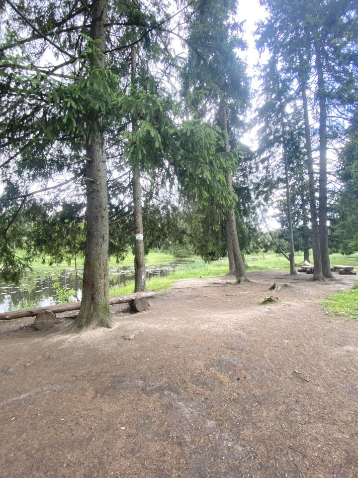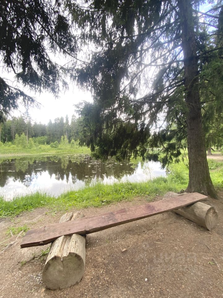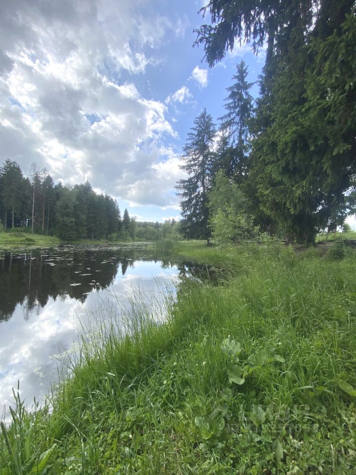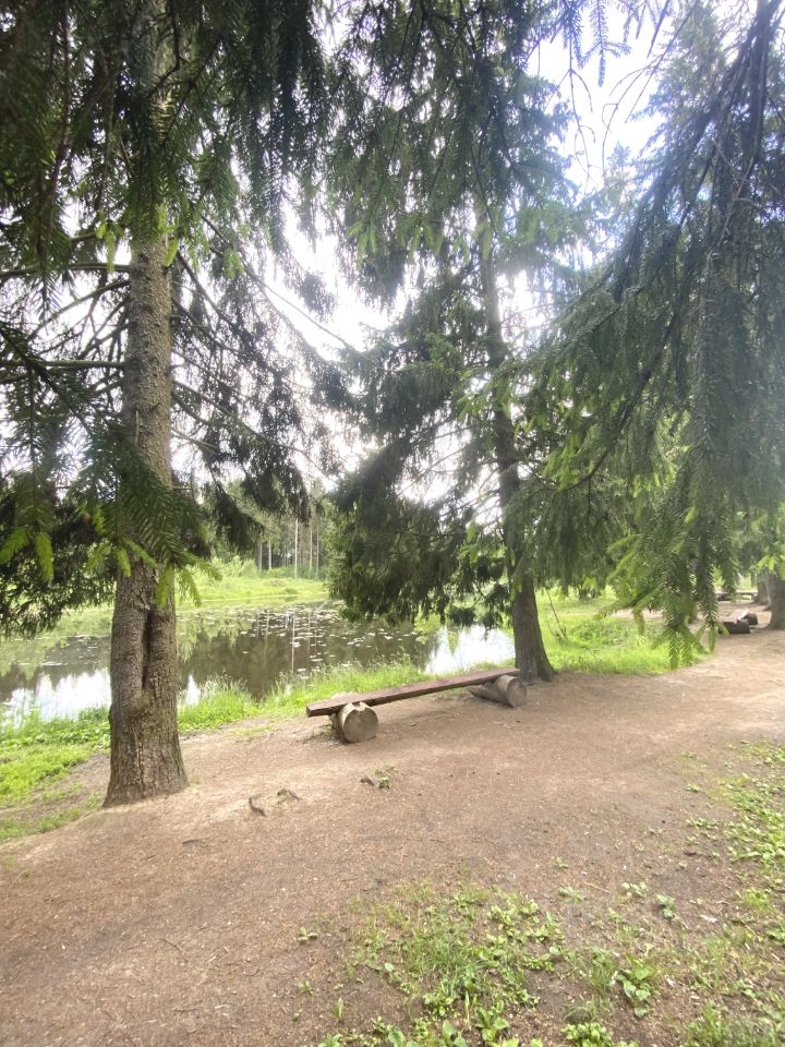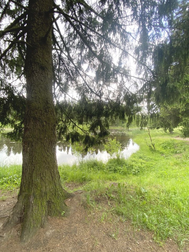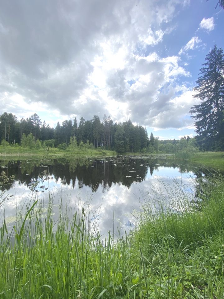 Рядом с участком — смешанный лес с соснами и красивый пруд.