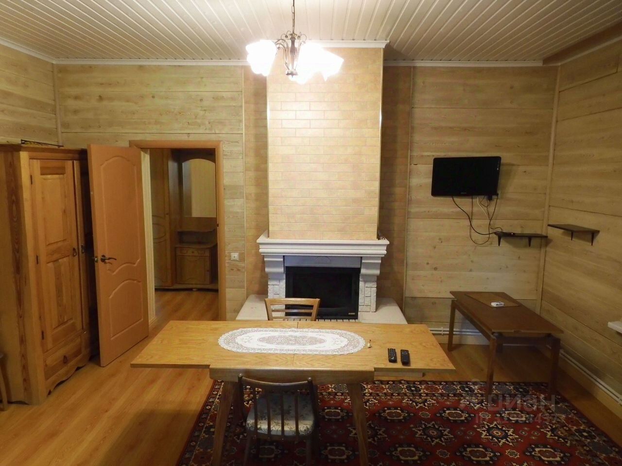 Первый этаж включает в просторную террасу, шесть спален, гостиная, две полноценные кухни с бытовой техникой, три санузла, три печки, в том числе с камином. Есть финская парилка, три душевые кабины.