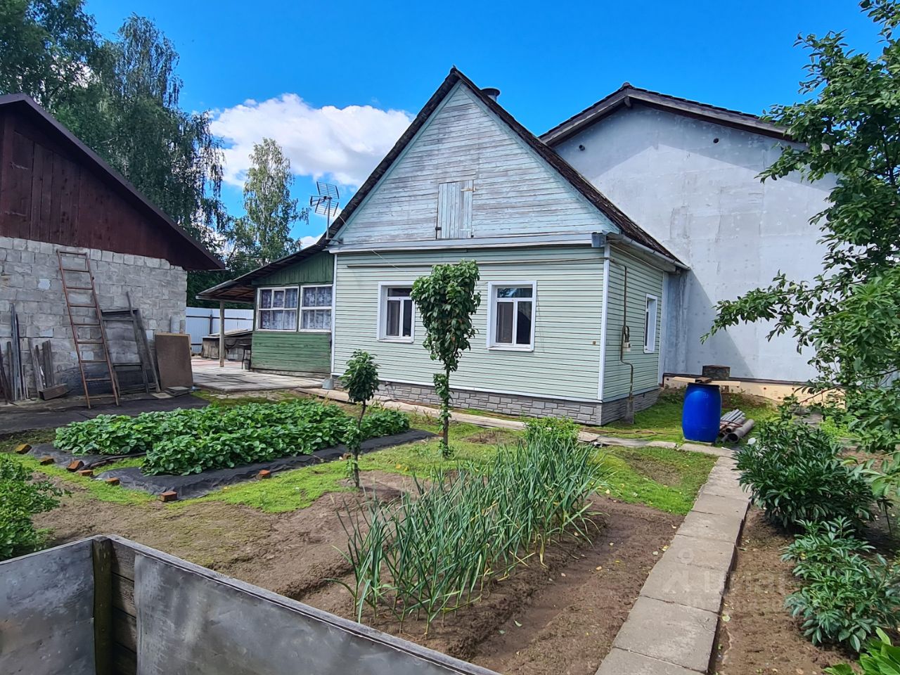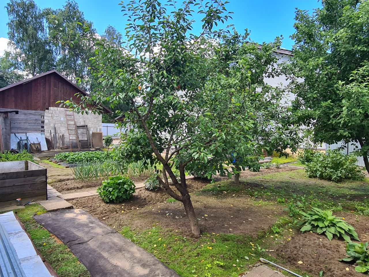 Участок: Земли населенных пунктов, площадь 4.88 сотки, ровный ухоженный. На участке находится гараж на два авто с ямой и хозблок. Посажены плодово-ягодные деревья и кусты.