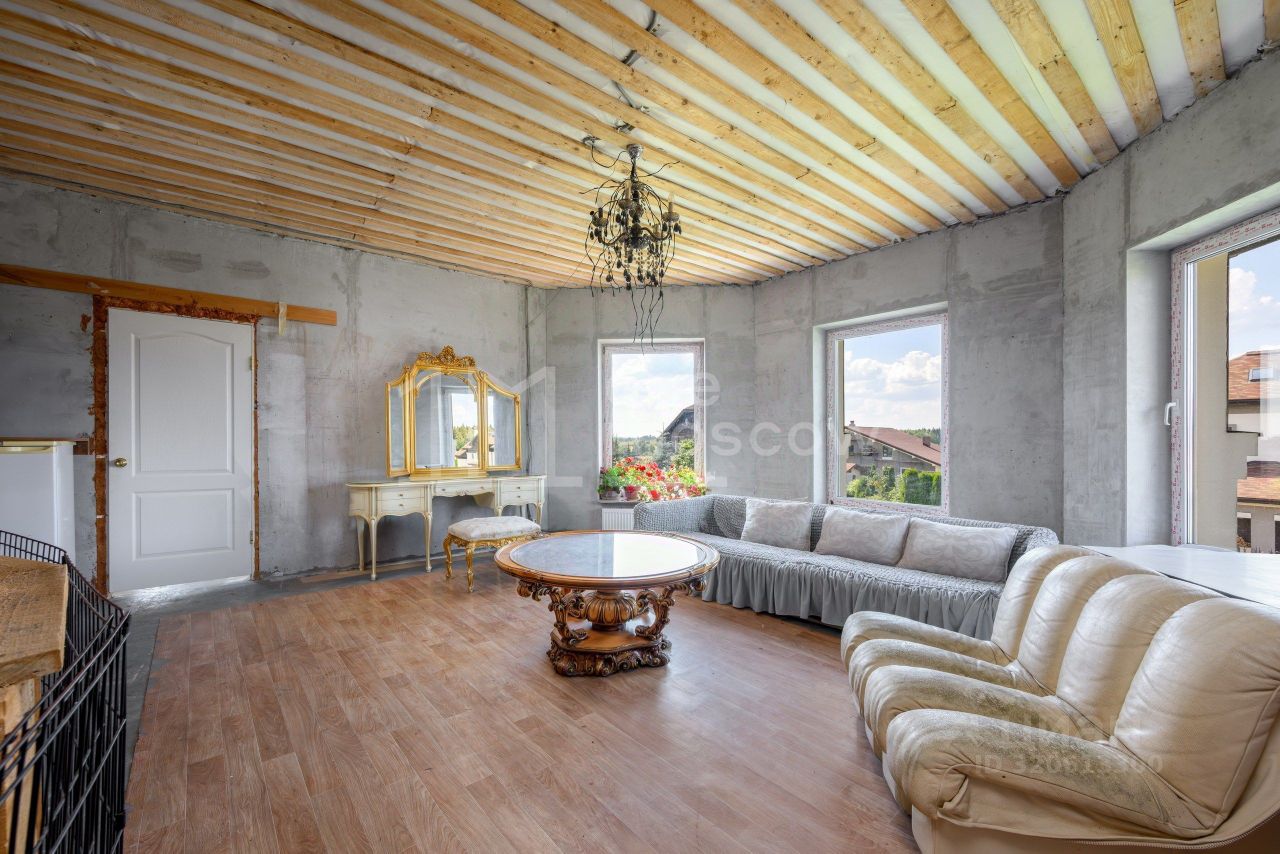 — На первом этаже: холл и гостиная, 2 гостевые спальни, столовая с кухней, вторая кухня, 2 санузла и 2 террасы — На втором этаже: 3 спальни, 3 санузла, холл-гостиная, балкона и террасса с панорамными видами. — Цокольный этаж занимают технические помещения, кладовая, 2 дополнительные комнаты и санузел, также есть возможность установки сауны или хамама.