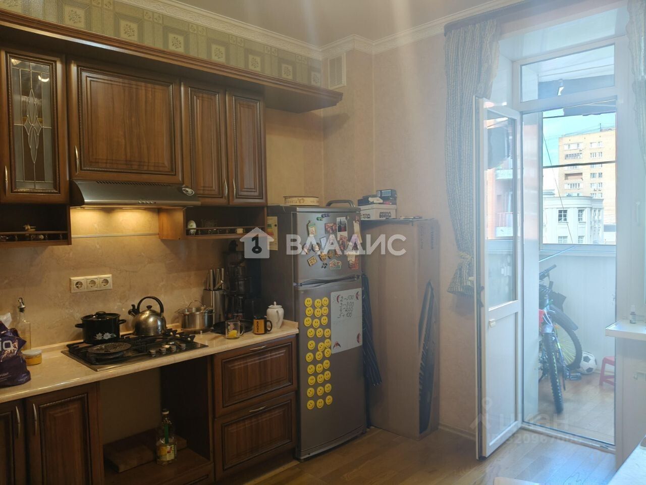 Квартира расположена на третьем этаже семиэтажного кирпичного дома 2001 года постройки. Общая площадь составляет 57,5 квадратных метров, из которых 27 квадратных метров — жилая площадь, а 12 квадратных метров — кухня. Высота потолков 2,65 метра создаёт ощущение простора и свободы.