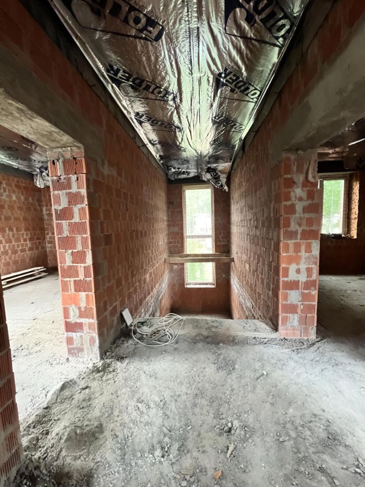 Коттедж площадью 260 квадратов. Построен на загубленном (1,8м) ленточном фундаменте из кирпича с монолитными перекрытиями. Высокие потолки - 3,3 метра.