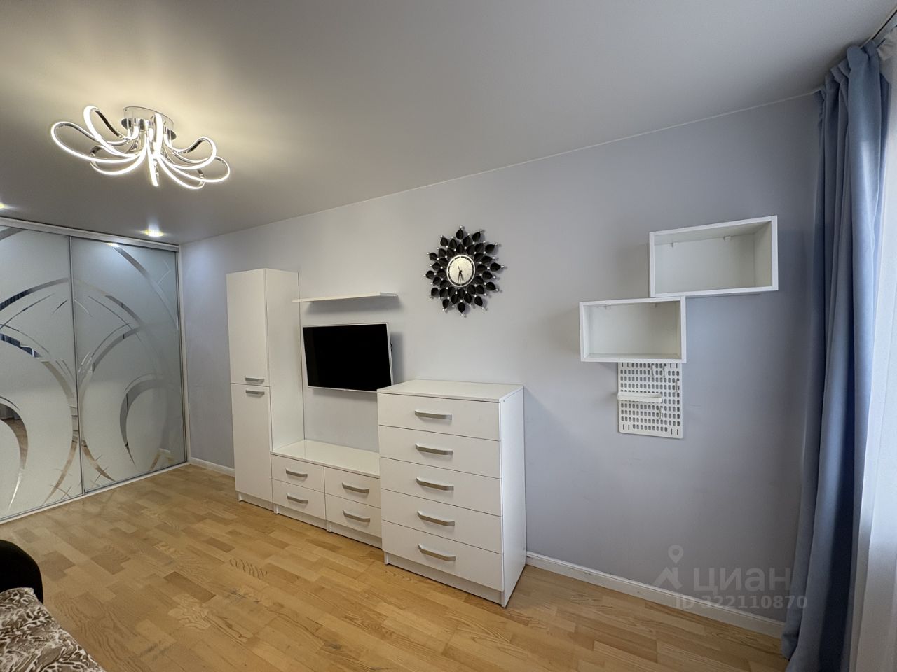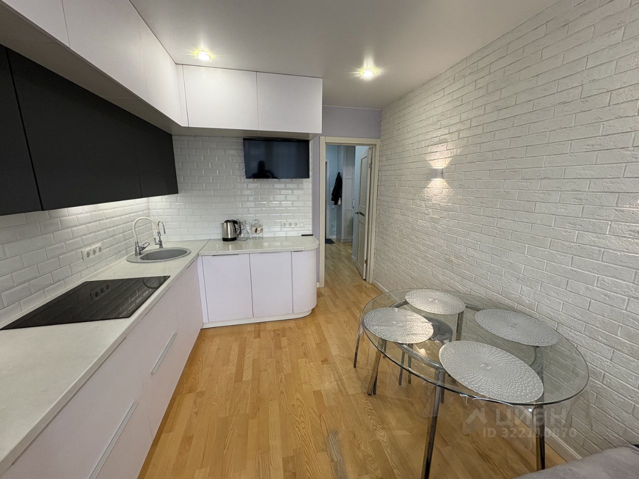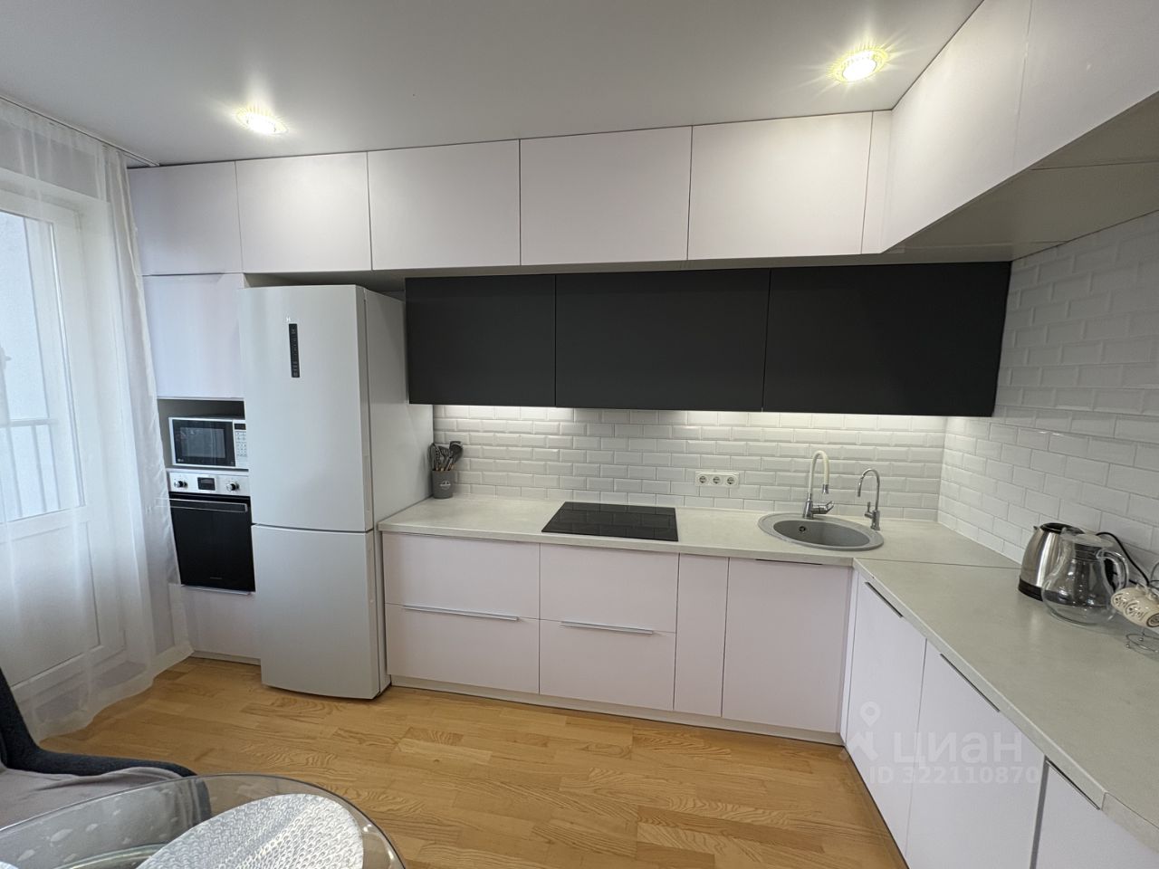 Квартира оборудована всей необходимой мебелью и техникой для комфортного проживания: кухонный гарнитур со встроенной техникой, холодильник, телевизор, стиральная машина, двуспальный диван.