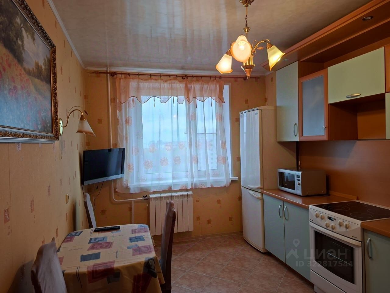 Есть вся необходимая для комфортного проживания мебель и бытовая техника, в том числе стиральная машина, холодильник, микроволновая печь, телевизор, чайник.
