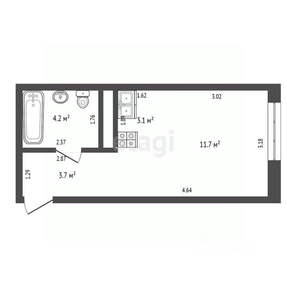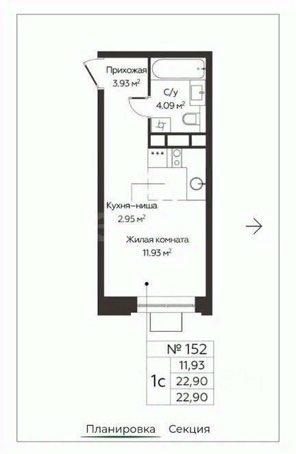Общая площадь22,9 м2