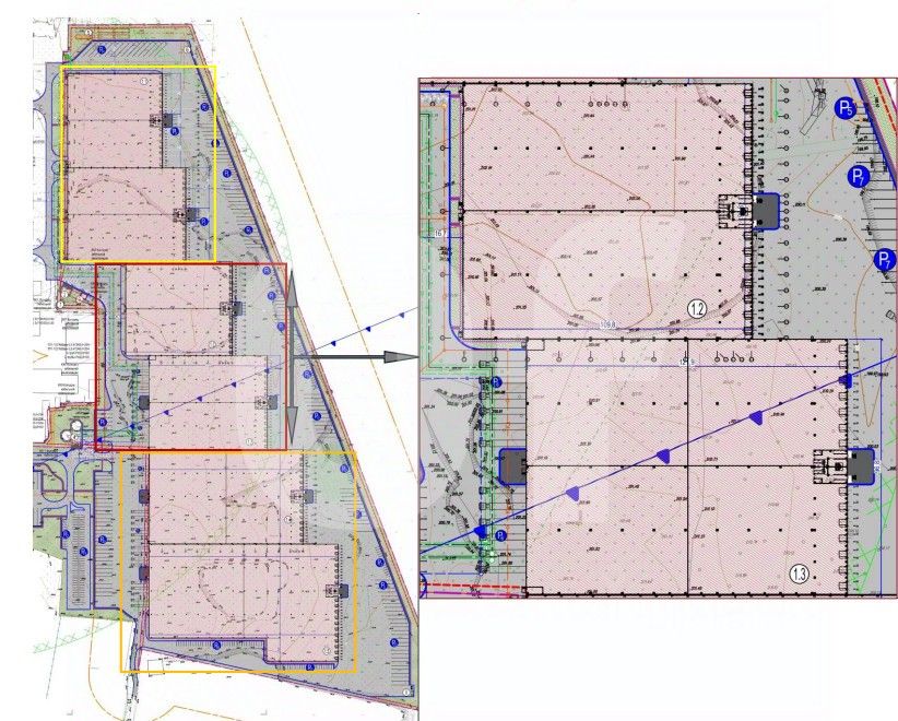 Общая площадь: 24 931.1 кв. м Склад: 21 618.8 кв. м Офис: 1 499.1 кв. м Мезонин: 1 813.2 кв. м