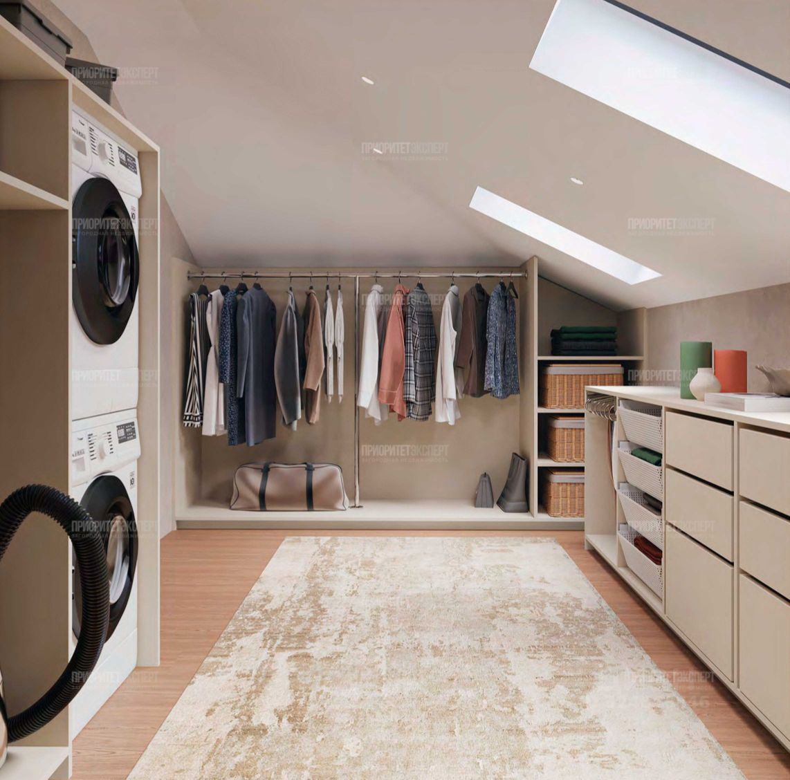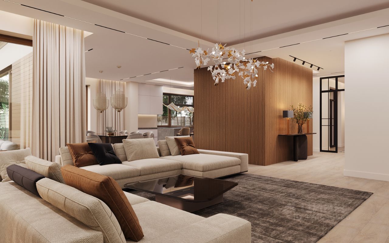 1 ЭТАЖ: гараж на 2 авто с хоз/помещением и котельной, прихожая, гардеробная, холл, кухня с кладовой-столовая-гостиная с выходом на патио и террасу, гостевая спальня с санузлом, комната для персонала (или вторая спальня), санузел. 2 ЭТАЖ: холл, 4 спальни, 3 санузла, гардеробные в каждой спальне, построчная, большая кладовая.