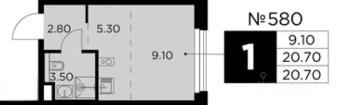 Цифры и факты: * Площадь: 20,7 м² * Этаж: 17 из 20 * Ориентация: Северо-Восток * Отделка: Чистовая * Срок сдачи: 3 квартал 2026 года