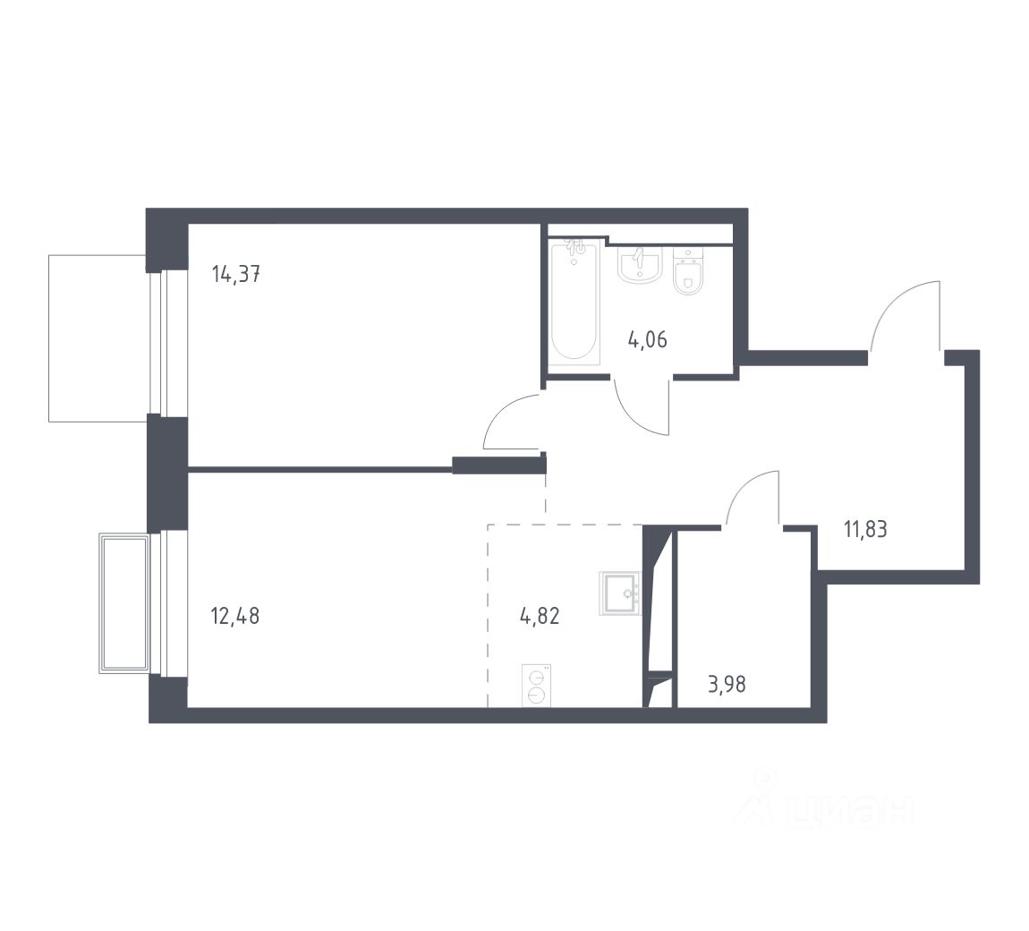 Общая площадь51,5 м2