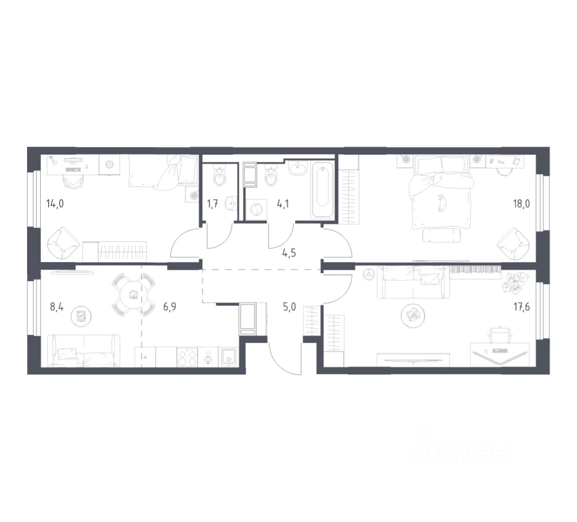 Строим кварталы для жизни с заботой о будущем. Предлагается 3-комнатная квартира комфорт-класса площадью 79,2 кв.м в корпусе 4.1 на 10-м этаже, в жилом комплексе ''Мытищи Парк''.
